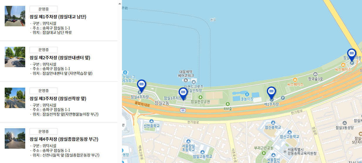 ✔ 잠실 제1 주차장(잠실대교 남단)