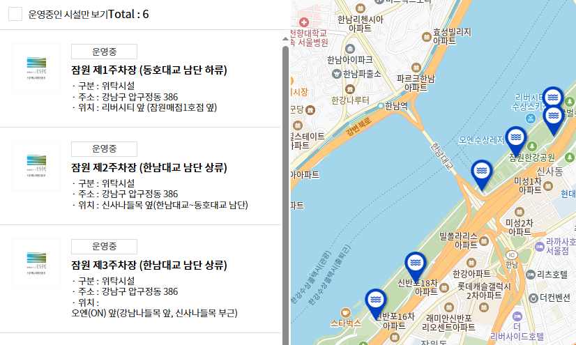 ✔ 잠원 제6 주차장(한남대교 남단하류)